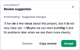 ClearDraft, tarayıcıda çalışan hafif ve gizlilik odaklı bir AI yazım asistanıdır. Kullanıcıların e-postalar, mesajlar, sosyal medya gönderileri ve belgeler yazarken metinlerini anında gözden geçirip geliştirmelerine olanak tanır. Otomatik olarak metin alanlarını tespit eder, dil bilgisi ve yazım hatalarını düzeltir, daha doğal cümle önerileri sunar. Kullanıcılar metinlerini seçerek veya yan paneldeki düğmeyi kullanarak önerilere erişebilirler.